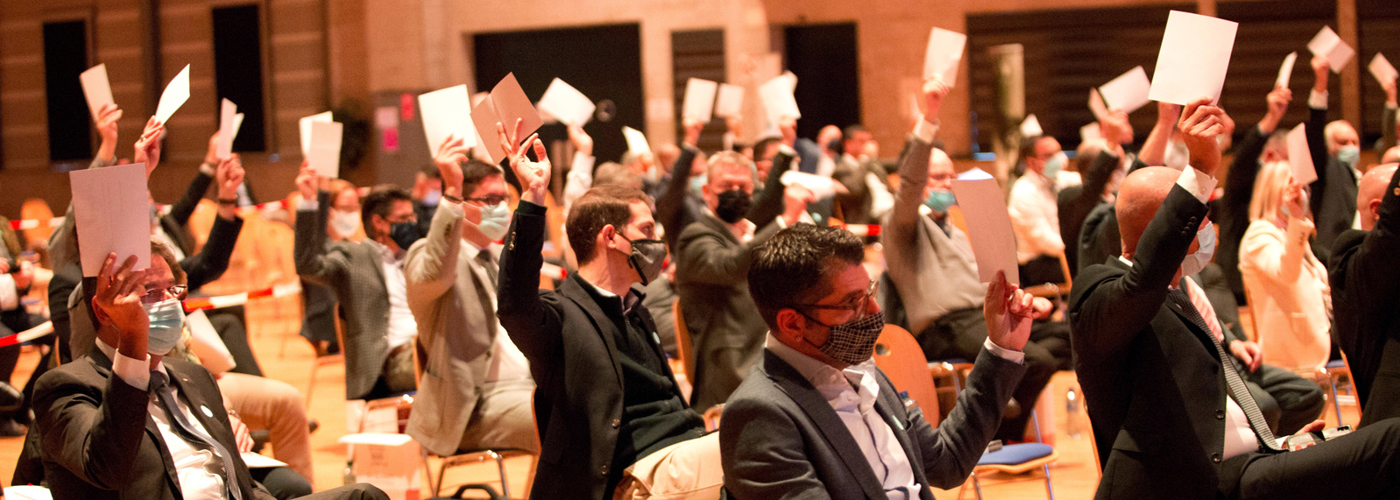 En raison de la pandĂ©mie, la Chambre suisse des arts et mĂ©tiers, «parlement» de l’Union suisse des arts et mĂ©tiers usam, s’est rĂ©unie virtuellement deux fois sur trois durant l’exercice. Comme l’annĂ©e prĂ©cĂ©dente, une grande partie des sĂ©ances 2021 a Ă©tĂ© placĂ©e sous le signe de la pandĂ©mie de coronavirus et de ses consĂ©quences sur les PME suisses. Il s’est notamment agi d’éviter que la loi COVID-19 – en dĂ©pit de toutes les critiques claires et justifiĂ©es Ă l’encontre des mesures du Conseil fĂ©dĂ©ral – ne fasse l’objet d’un vote sanction. La Chambre a, en outre, examinĂ© les proÂblèÂmes liĂ©s aux nouvelles cartes de dĂ©bit. Elle a Ă©galement pris connaissance de la stratĂ©gie de l’usam et des objectifs politiques qui en dĂ©coulent pour les annĂ©es 2022 Ă 2026.